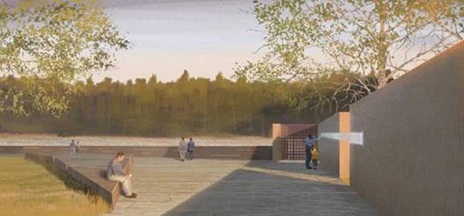 To make it easier to verify my claims about what is in the Crescent of Embrace design, I am posting copies of the five original Crescent design PDFs. They are also available from the Park Service website, which has them bundled together with the Stage II jury report. If that ever goes away, you should be able to get them from the National Park Service Archives by calling the curator at 814 443-4557 for a password. Originals of the Bowl of Embrace redesign images are available on the Memorial Project's Media page. (Scroll down to March 8, 2006 and November 29, 2005.)